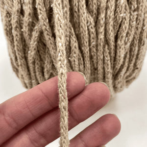 Cordón tejido en hilado reciclado, perfecto para manualidades en macramé, aplicaciones para indumentaria, tejidos más pesados como alfombras o bajadas de cama o una opción reciclada y sustentable al trapillo.