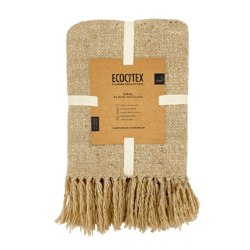 Además de ser una pieza sofisticada y versátil, este chal está confeccionado con fibras recicladas, sin uso de agua ni tinturas. Su producción en Chile apoya la economía circular y promueve un modelo de moda consciente sin sacrificar calidad ni estilo.