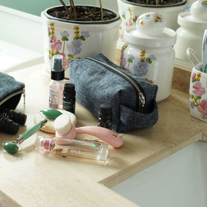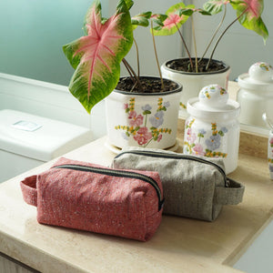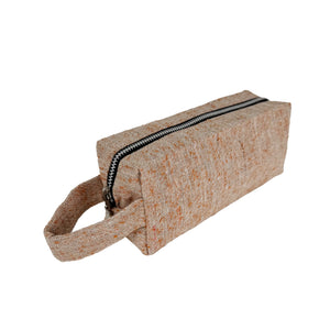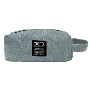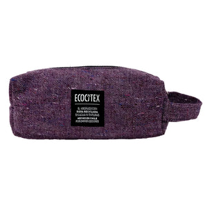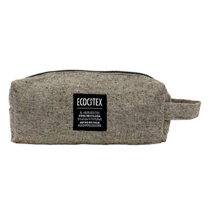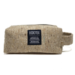 Confeccionado con tela reciclada por fuera y forro de tela rescatada de prendas por dentro, este neceser combina resistencia, estilo y un impacto positivo.