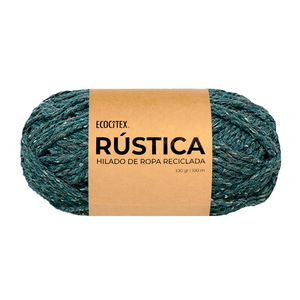 Rústica es un hilado muy firme que se puede usar para tejer a crochet, palillo y telar (tanto para trama como para urdimbre).Por ser de ropa reciclada este no destiñe con el paso del tiempo, ni con los lavados, ni con el sol.Abrigado, suave y muy fácil de mantener, se puede lavar a mano o en lavadora.