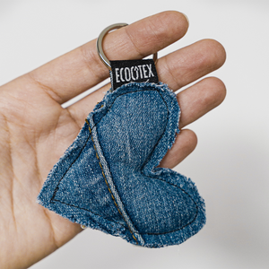 El Llavero Corazón de jeans reciclado no es solo un accesorio funcional y con estilo, es también un símbolo del espíritu de Ecocitex. Confeccionado con jeans reutilizados, este llavero resistente y versátil es perfecto para mantener tus llaves organizadas o para decorar tu mochila favorita.