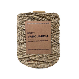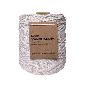 Aquí te presentamos los Conos Vanguardia, hilado de dos hebras de ropa reciclada por Ecocitex, nuestro hilado más delgado que da terminaciones muy finas y delicadas.