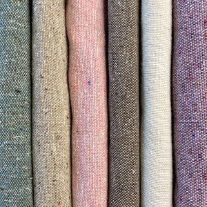A diferencia de nuestra versión con urdimbre de lino, esta tela tiene una caída más suelta y menos estructura, lo que la hace ideal para productos como totebags y prendas ligeras que no requieren un acabado rígido.
