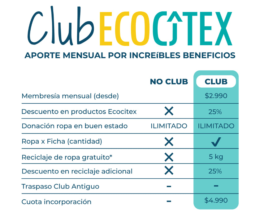 Compra nuestros productos con 25% de descuento, Intercambia ropa en buen estado, recicla hasta 5 kilosde ropa mensuales y otros beneficios más!