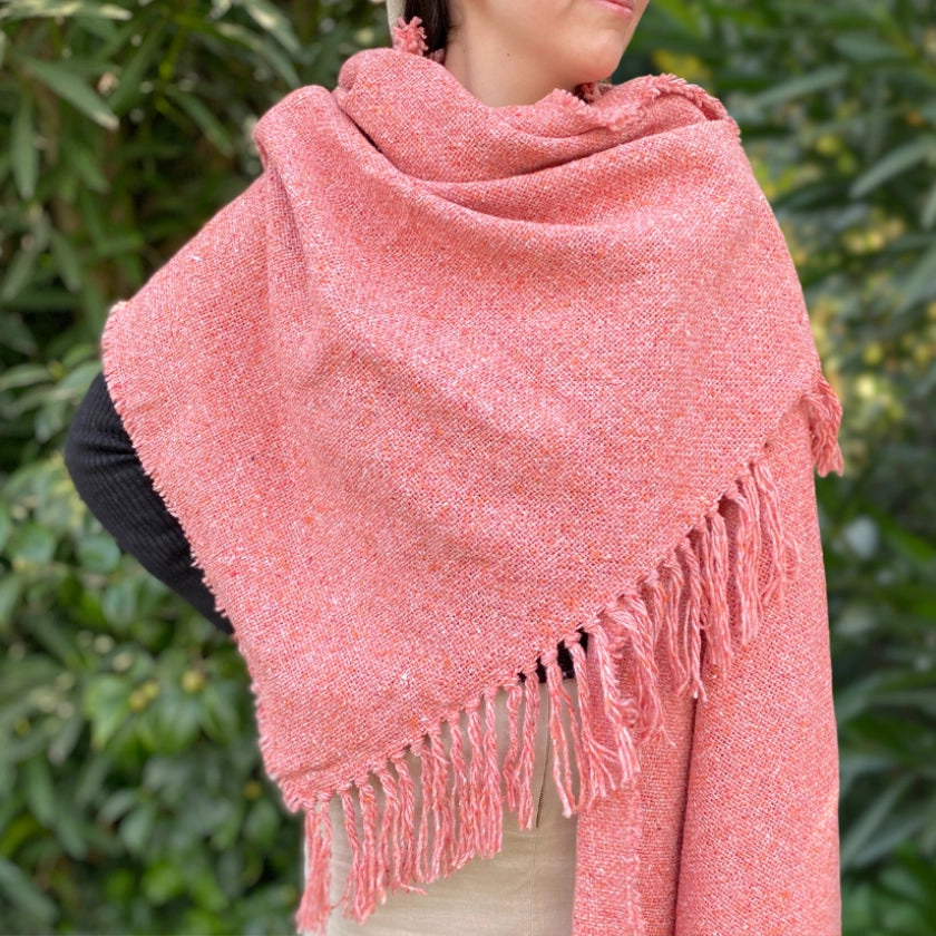 Estos chales o encharpes, elaborados 100% de hilado de ropa reciclada, revelan una textura única donde las diversas hebras recicladas crean una terminación maravillosa. En sus extremos presentan nudos hechos a mano. Cada uno es una pieza única que aporta carácter, calidez y estilo.