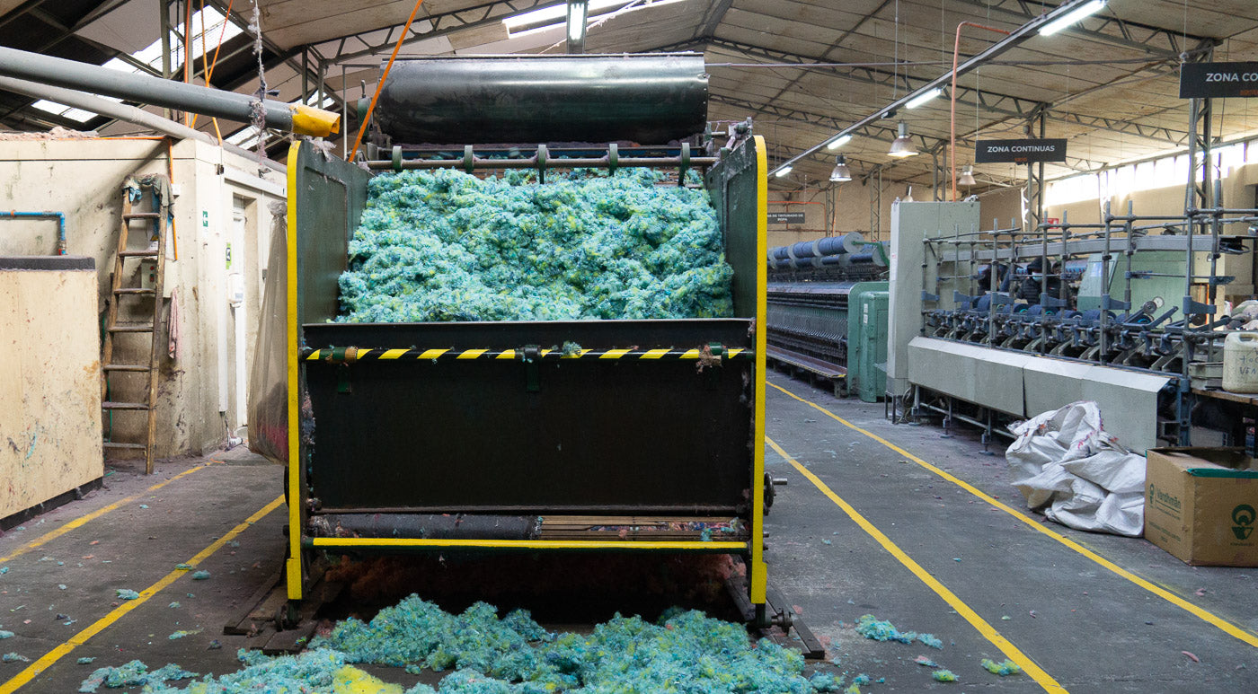 No utilizamos agua ni tinturas en nuestro proceso de reciclaje textil