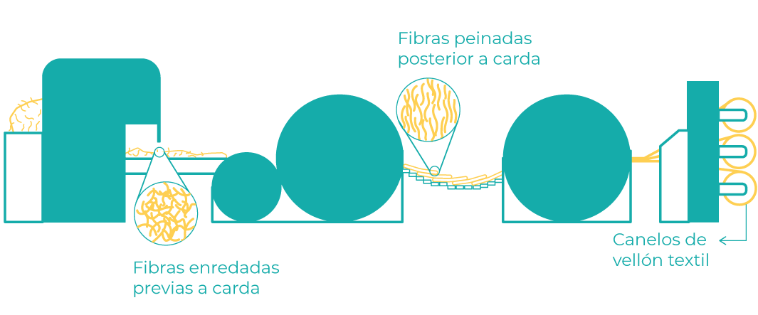 Se va cardando, las fibras, eliminando lo que no se puede hilar